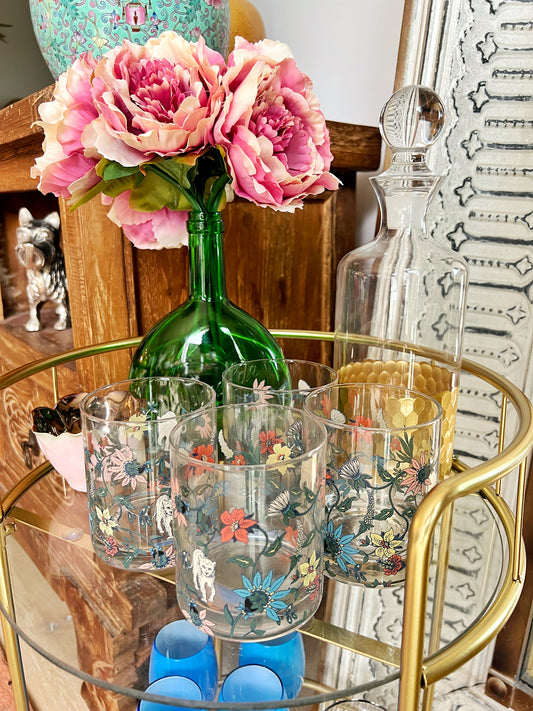 Mid Century Tropical Bar Cart with accessories