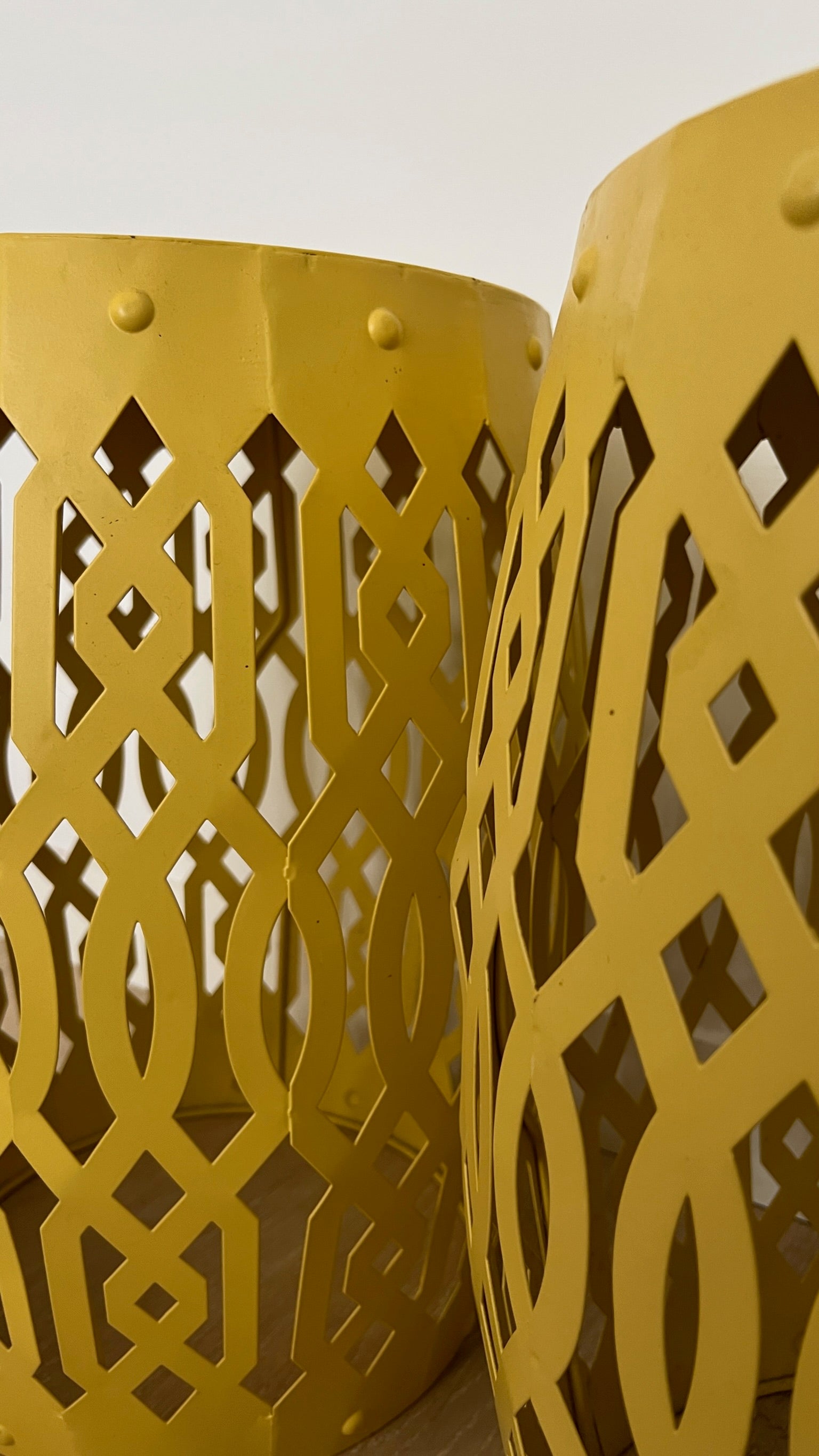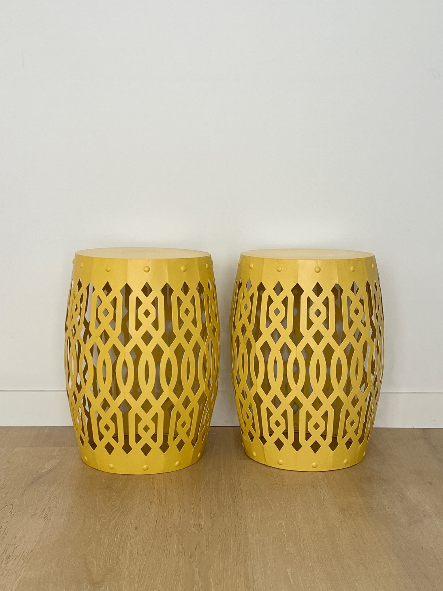 Pair of Funky Yellow Metal Stools/ Side Tables